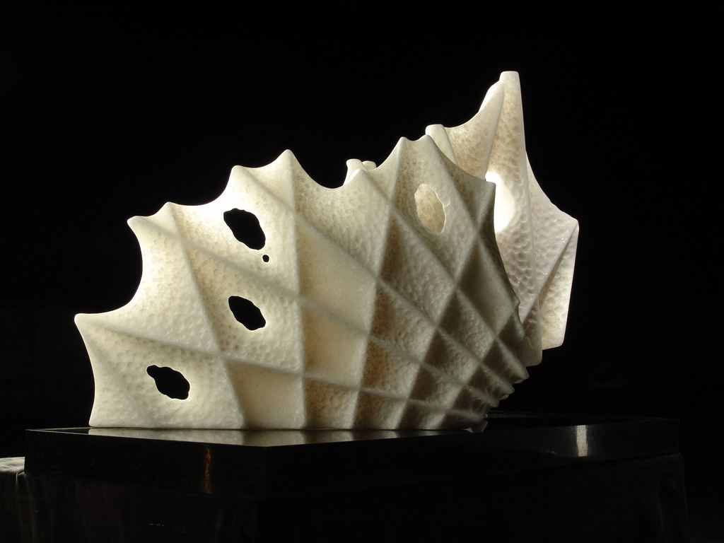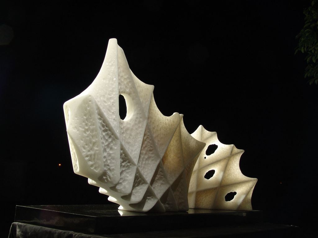 曙光乍現,波光粼粼,迎向陽光的禮讚,生命精采美妙。作品採用兩片式的組合形式,將光線、水波、及折射的效果,以意象的形式呈現,透過光影的層次效果變化,使作品更顯生動豐富。以不同的視點,詮釋海平面,期望以不同的角度看待人生。