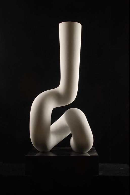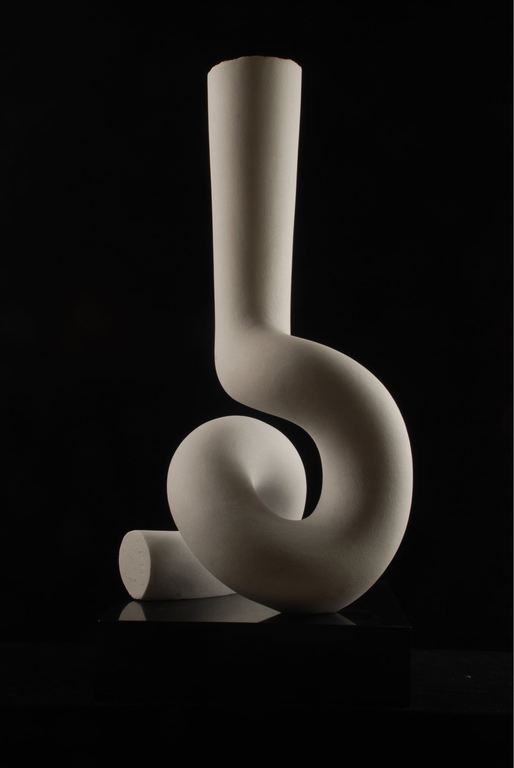 在各種角度間的迂迴曲繞中,容納了四方能量,一種由上而下的流勢,一轉一迴一繞一折間,體現著一種動力的平衡,寧靜裡自有一股和諧與流暢。如一容器,涵藏四方,兼容並蓄。